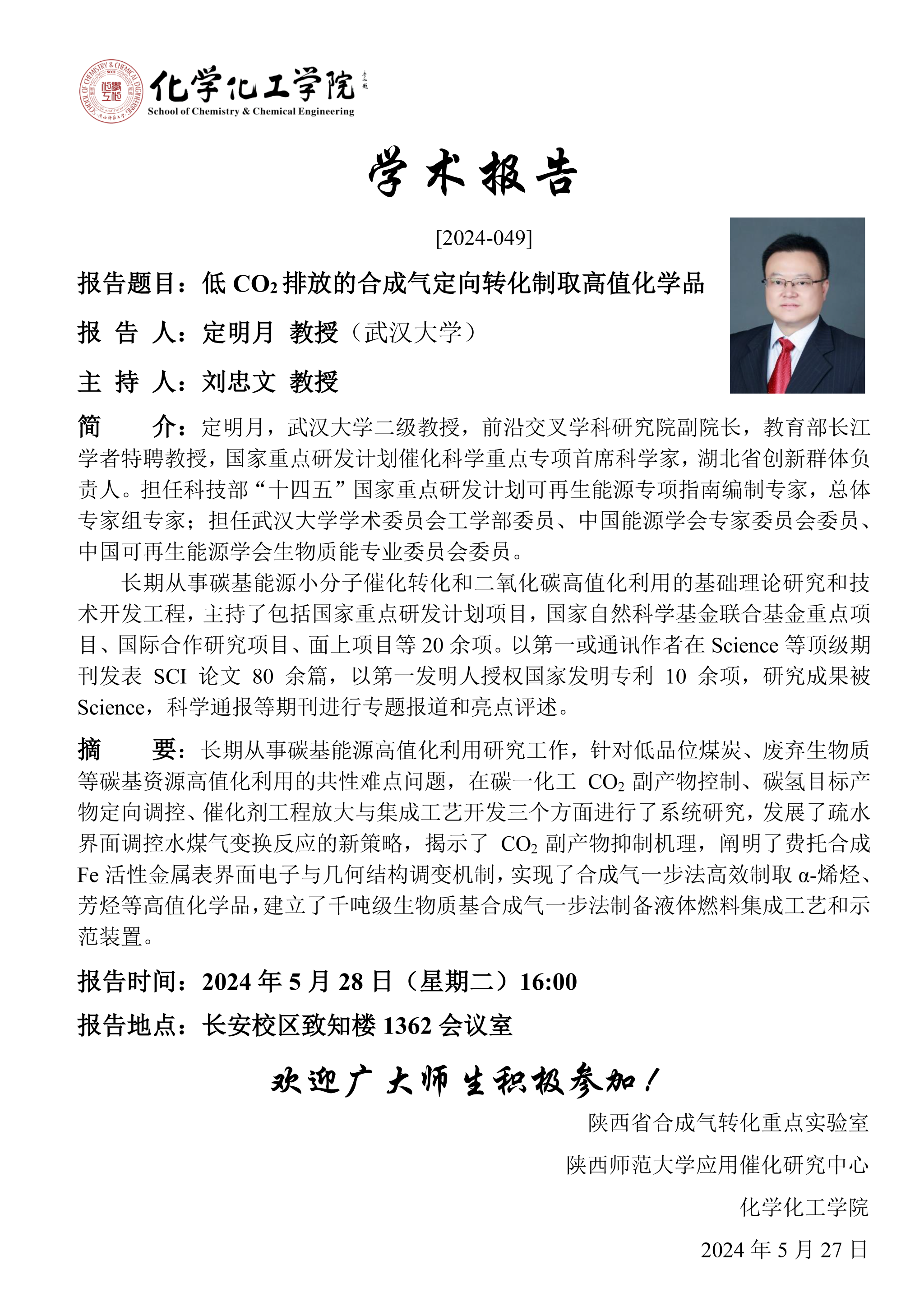 地址:陕西师范大学长安校区致知楼一段