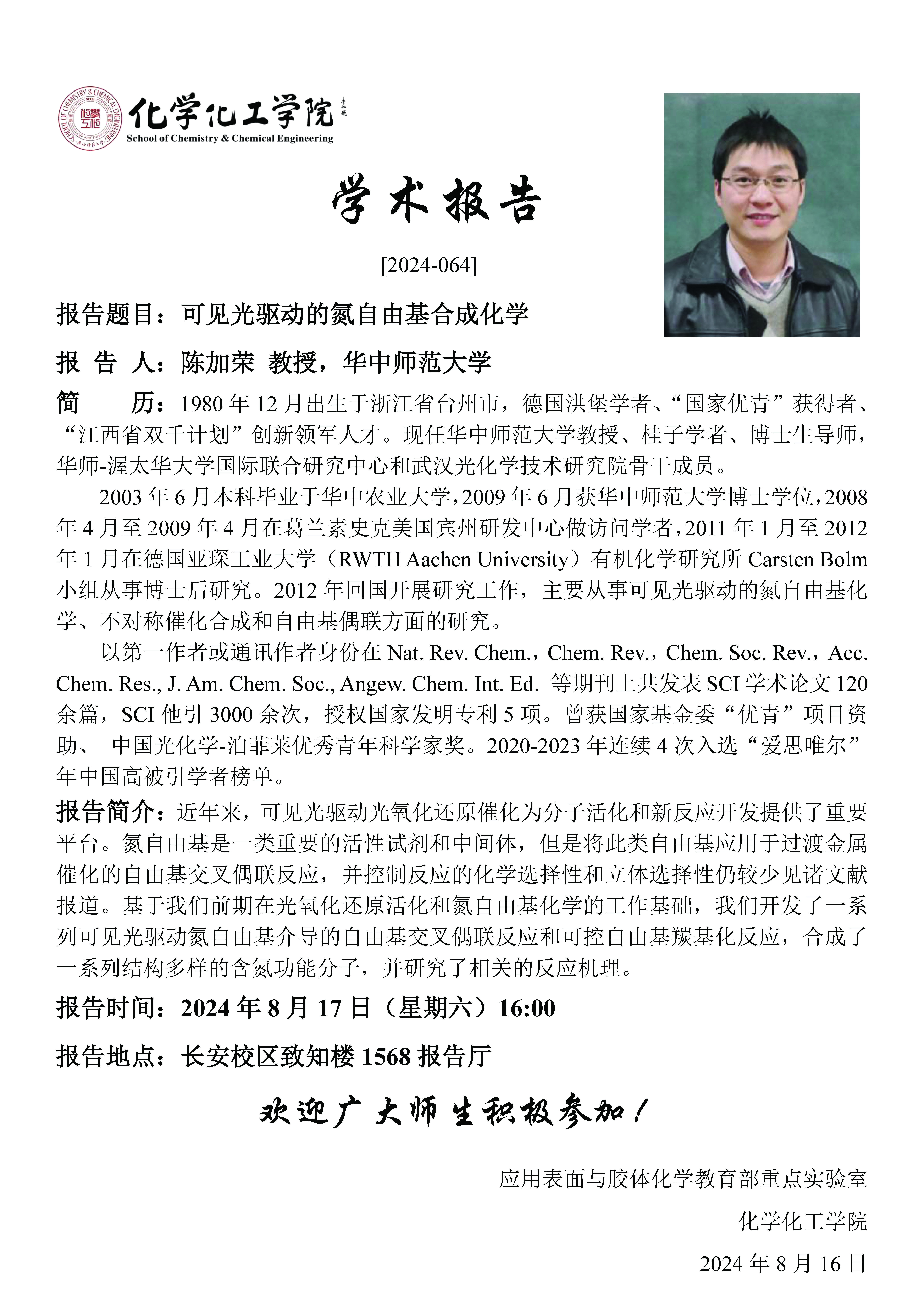 地址:陕西师范大学长安校区致知楼一段