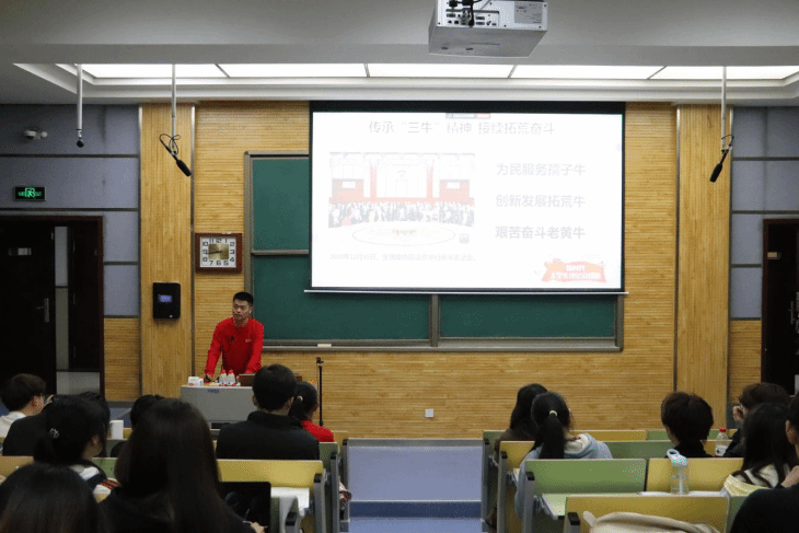 新时代大学生理论宣讲团的武渤翔和张雅妮两位宣讲员分别以《传承“三牛精神”,接续拓荒奋斗》《弘扬延安精神,奏响时代凯歌》进行理论宣讲。