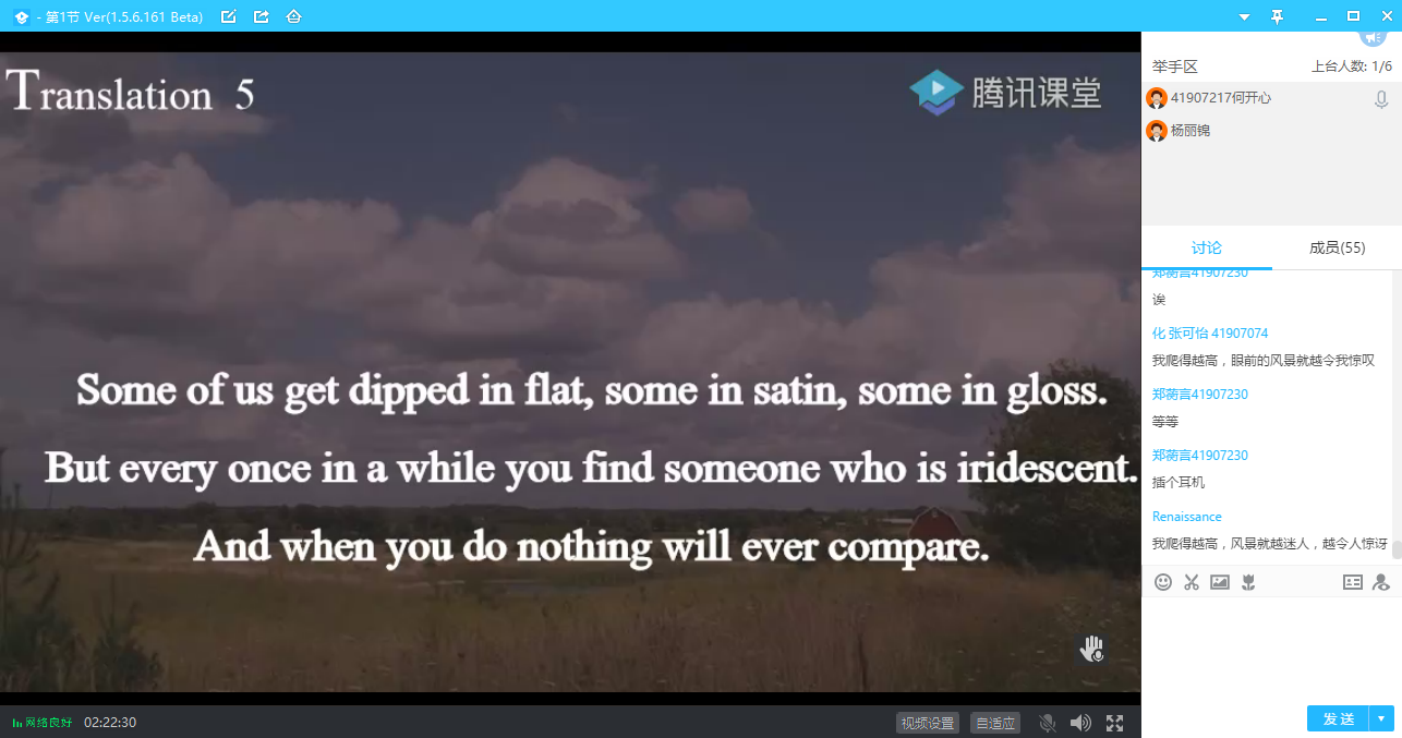 介绍完毕后,主持人提出了几个与电影相关且可引发同学们思考的问题后,在腾讯课堂中统一播放电影,让大家在观看过程中对相关问题进行思考和记录。影片情节时而轻松欢快,时而又令人揪心,大家在观看过程中也针对相关情节在评论区表达了自己的看法与感受,气氛和谐融洽。