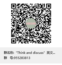 有意愿参与者可扫描二维码加入“Think and discuss”英文电影鉴赏QQ群,并通过推荐和投票的方式确定英文电影鉴赏会的主题。