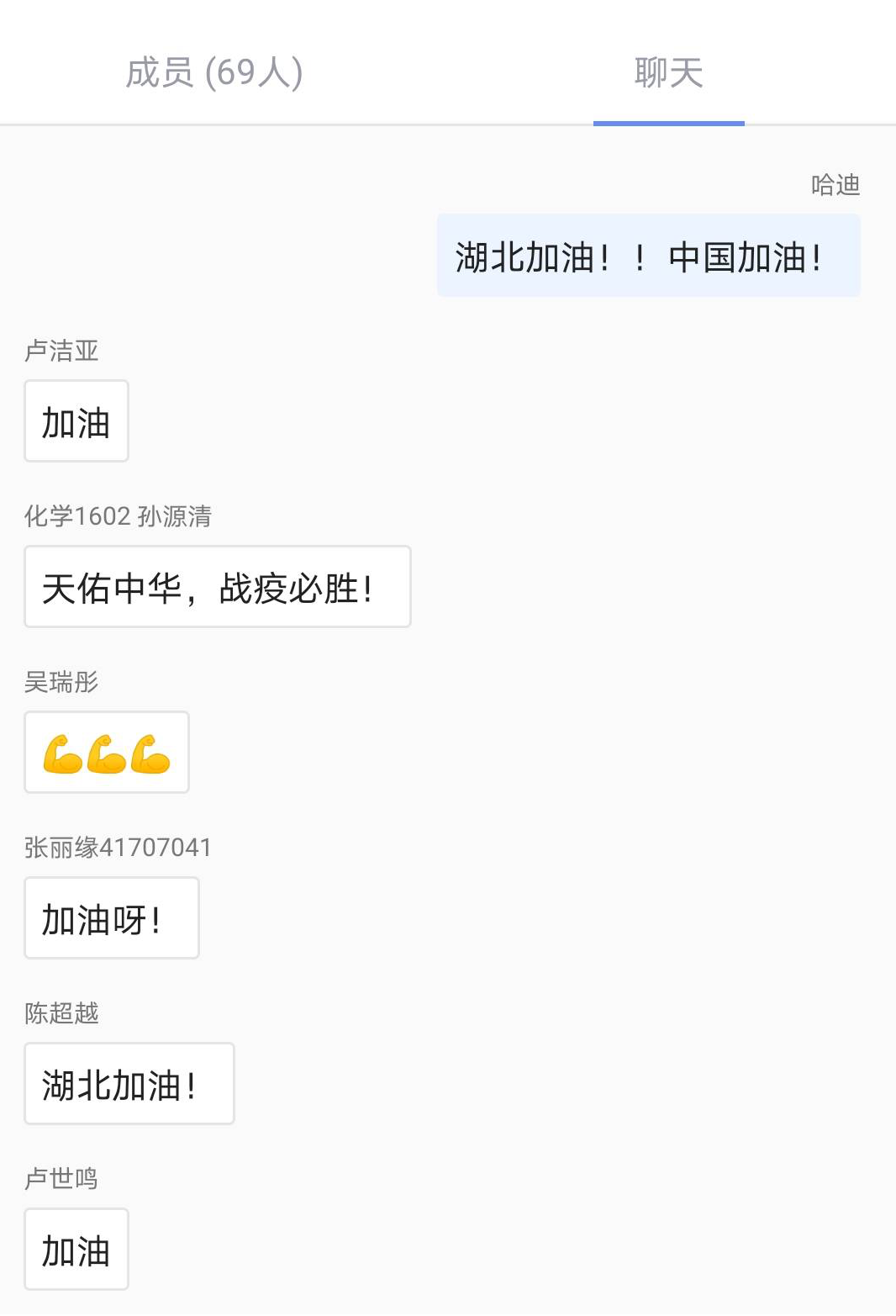 随后,同学们结合当前疫情防控情况积极发表看法。李晨希同学讲到自己在这次疫情防控攻坚战中印象最深刻的不是某个具体的人,或具体的事情,是一波又一波身赴前线无私奉献的青年志愿者们。身处湖北的李璐同学,就此次疫情的切身感受谈到,看着身为医务工作人员的亲人奔赴一线时,自己由从最初的惊讶到认识疫情的严重性再到最后的支持,她感到无比的骄傲;社区工作人员每天积极监测防控,使得成为重疫区的社区得到控制,也让她感到无比温暖。她坚信湖北在这场没有硝烟的战争中一定会胜利。
