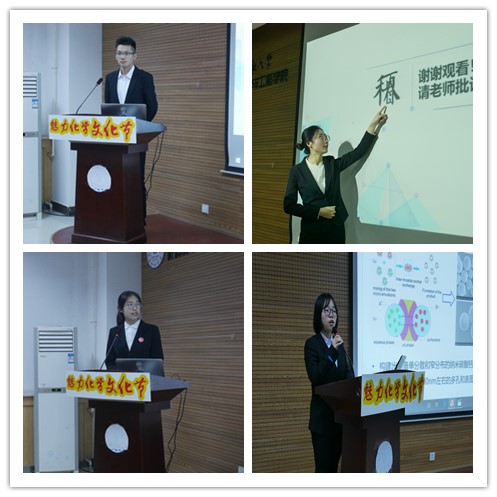 在项目汇报过程中,每位选手镇定自若,稳定发挥,表现可圈可点。孙君岳同学作为第一位汇报的选手以集幽默与内涵于一体的视频引起了评委老师的关注,他的视频也获得了观众的一致好评。王涛副教授就课题的一些专业概念进行提问,并对PPT制作和视频拍摄提出了建议。来自材料与工程十博