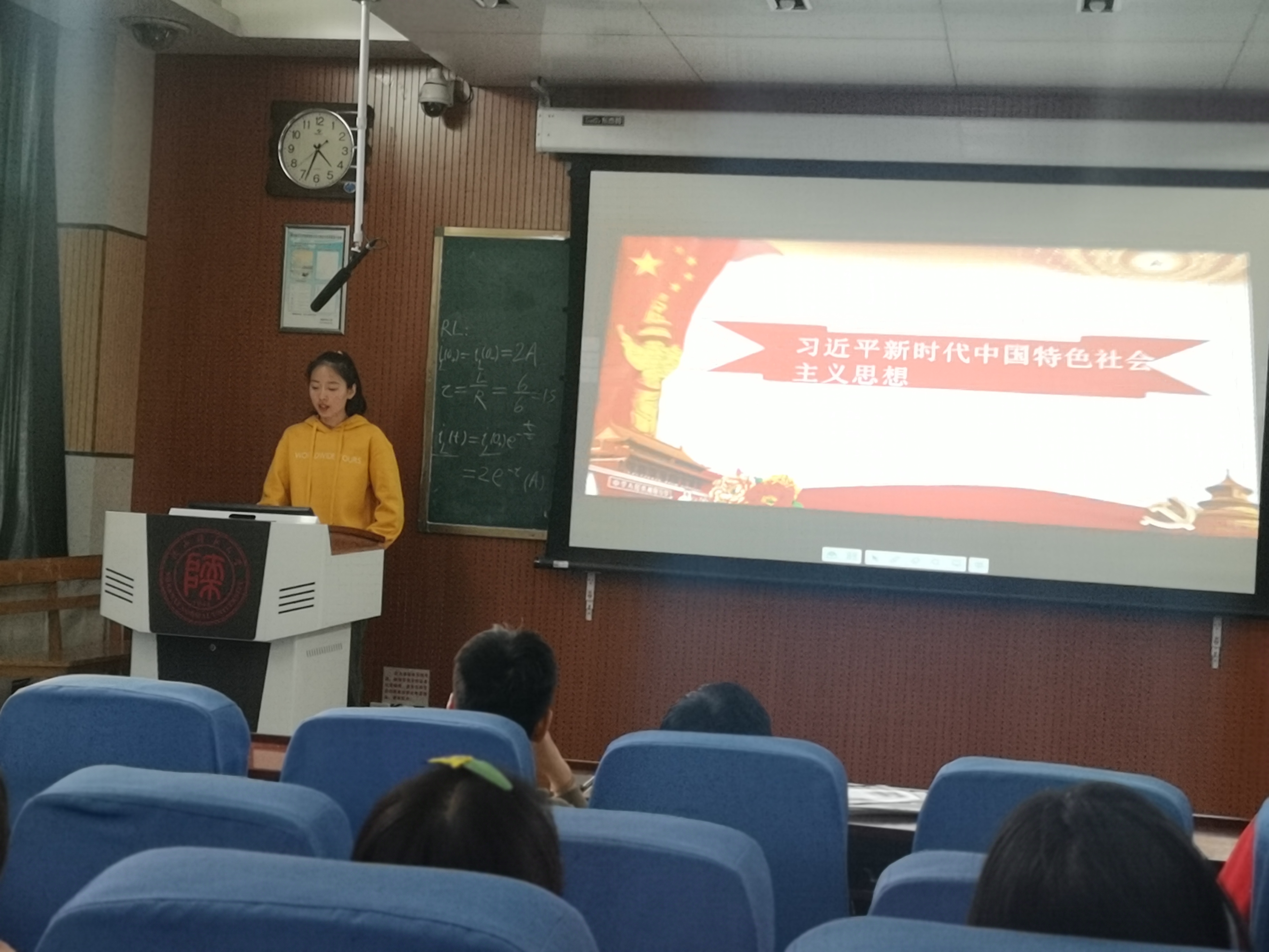 应化1801团支部“走进新时代,贯彻新思想”主题团日活动在雁塔校区教学四楼顺利召开。本次活动由团支部书记曹阐尹主持。