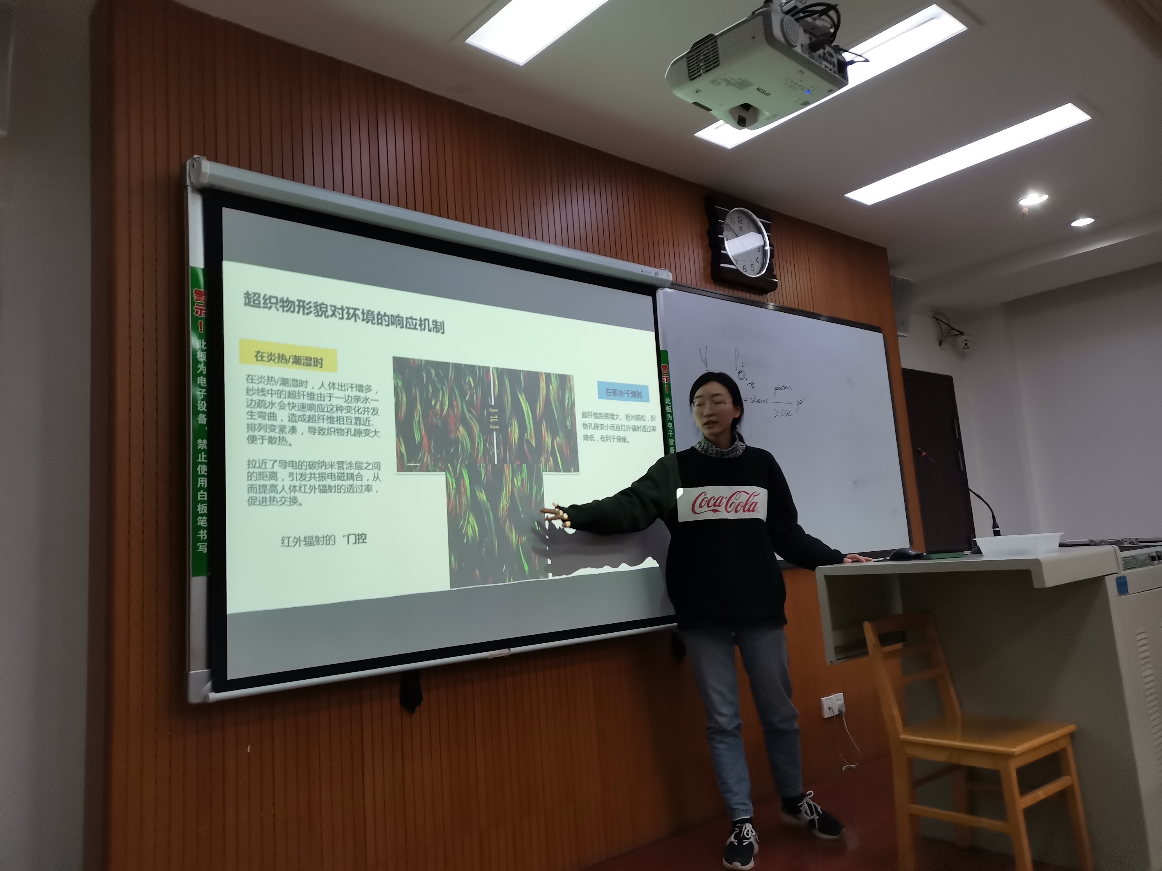 初赛的最后,两位评委为我们送出寄语。评委张畅说到,我们在日后的学习科研中,要特别注意好习惯的养成,记着老师们的教导,不断学习,不断提高自己,另外在PPT制作中还是应该多多注意思维逻辑这一点,明确自己展示中的重点所在;评委杨乐对大家的展示称赞有加,同时也希望大家能够提高对细节的重视,做到更好,此外,她在科研,实验方面提出了自己的祝愿,希望大家能在自己坚持的道路上越走越远。