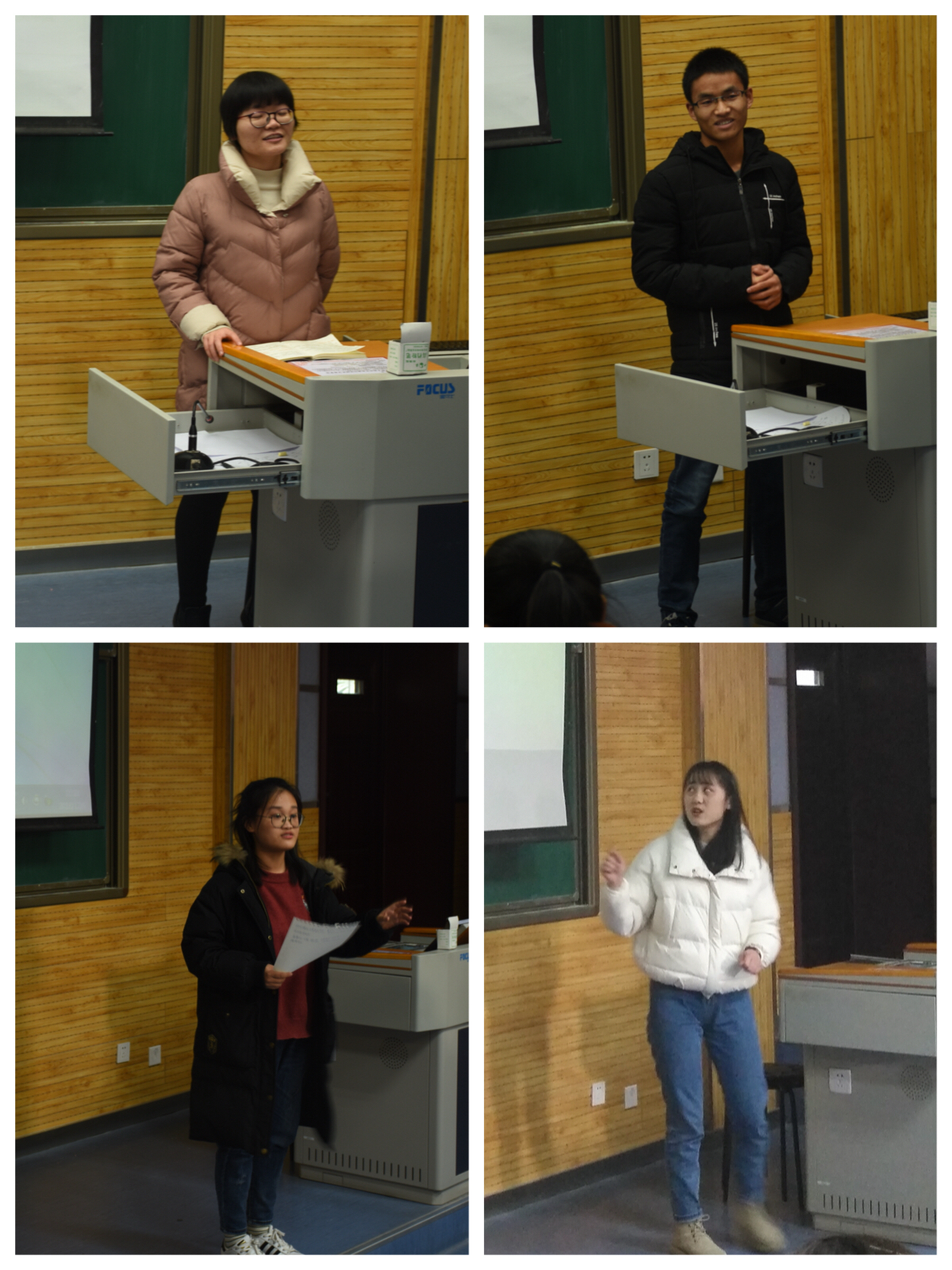 公费师范生学长学姐见面交流会由2018级卓越班班长王雪茹主持。来自2015级师范专业的李琳同学、崔文孝同学、唐甜同学和张旭同学与2018级公费师范生分享了他们对于公费师范生的认识以及宝贵的学习经验。他们就英语学习其中她对英语的学习、实习感悟、课余时间的有效安排、提高师范技能等方面与大家进行交流,鼓励他们认真学习、多参与科研项目、讲课比赛等活动,提高自己的核心竞争力。