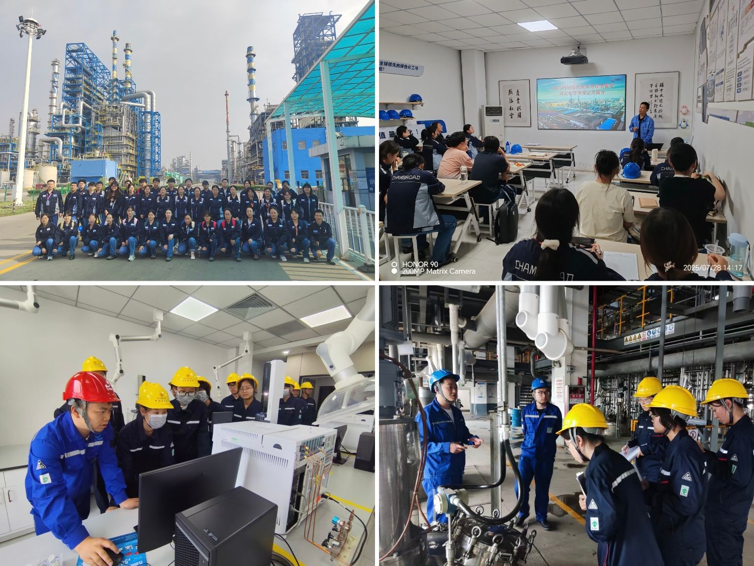 化学(笃学班)14名学生在大美化工基地实习两周,先后走访5家化工企业。通过企业介绍会、安全培训、车间参观、实验室交流等环节,系统学习生产工艺、质量监控、安全管理及研发方向,重点关注高分子材料等领域的技术创新与绿色发展理念。学生全程规范穿戴防护装备、遵守管理规定,展现良好风貌,获各企业负责人好评。