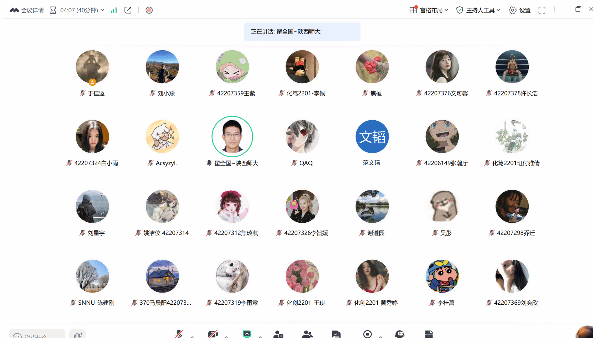 副院长翟全国,党委副书记贾颍辉,实习带队教师焦桓、陈建刚、刘小燕、谢遵园,辅导员刘瑞,教学秘书于佳盟,化创2201班、化笃2201班、应化2201班60余名学生参会。会议由翟全国主持。