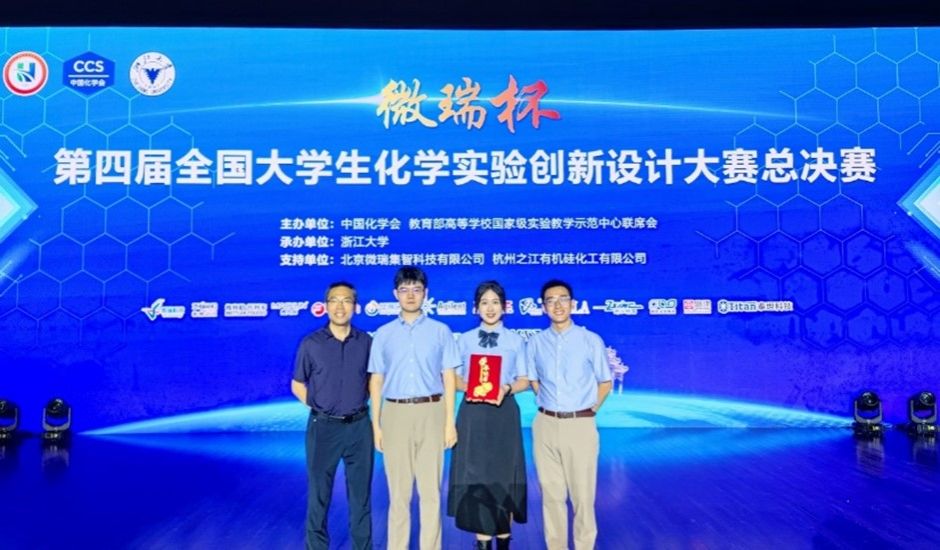在2023年8月20至23日由浙江大学举办的“微瑞杯”第四届全国大学生化学实验创新设计大赛全国总决赛中,陕西师范大学2020级化学专业学生郑绚文、杜江辉、李伯达,及指导教师黄治炎和王涛组成的“C3合成队”获得一等奖。本届大赛共有447所高校、1076支队伍进入全国七大分赛区展开激烈角逐,最终90支队伍晋级总决赛。这也是十博(10bet)亚洲官方网站