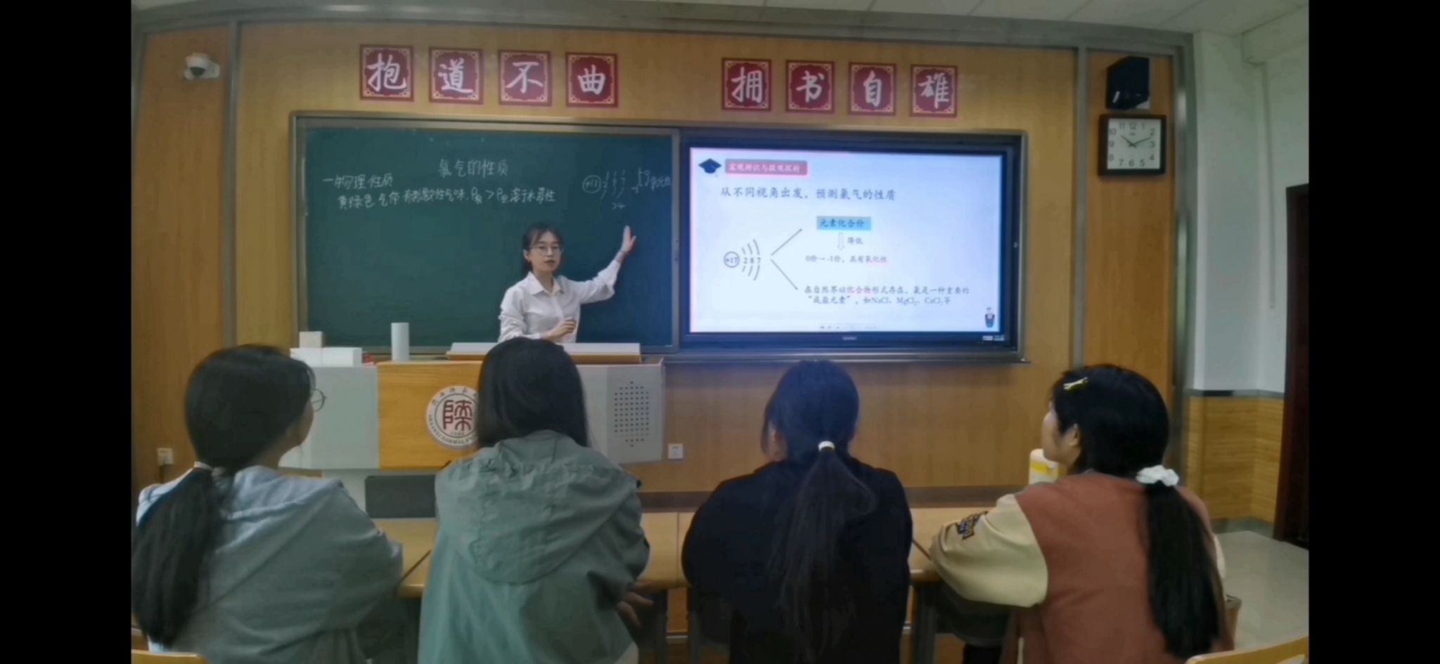 推选出孙晨昕、王瀚石、程鸯鸯、马静怡、王欣怡5名同学进行“空中展示”,2023年11月7日-11月9日,五名同学分别以《原电池》、《铁 铁的单质》、《物质的量》、《气体摩尔体积》、《金属材料》为课题进行了腾讯会议线上授课。授课之前,学科教学论教师对参加授课的学生进行专门指导,大大提高了教学观摩课的质量和效果;授课结束后,学科教学论指导教师、实习学校专业指导老师都对其进行了打分和精彩点评,实习带队老师也对授课学生在实习期间的情况进行了评议。