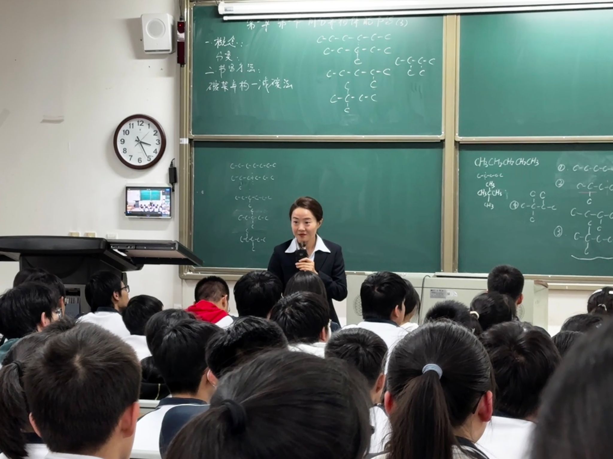 随后,卓越班24名同学进行了课堂观摩,马俊蕾老师讲授了人教版高中化学选择性必修3的内容《同分异构的书写》,马老师的授课特点突出,采用问题驱动式教学,课堂设计性强,整节课教学思路清晰,过程流畅,学生问题回答积极,课堂氛围活跃。展现出马老师扎实的基本功和高水平的教学技能。课后,马老师还向同学们分享了本次课堂的教学思路与教学方法,向同学们传授了宝贵的教学经验和教学技能,并鼓励同学们永不停下学习的脚步,成为更好的自己。