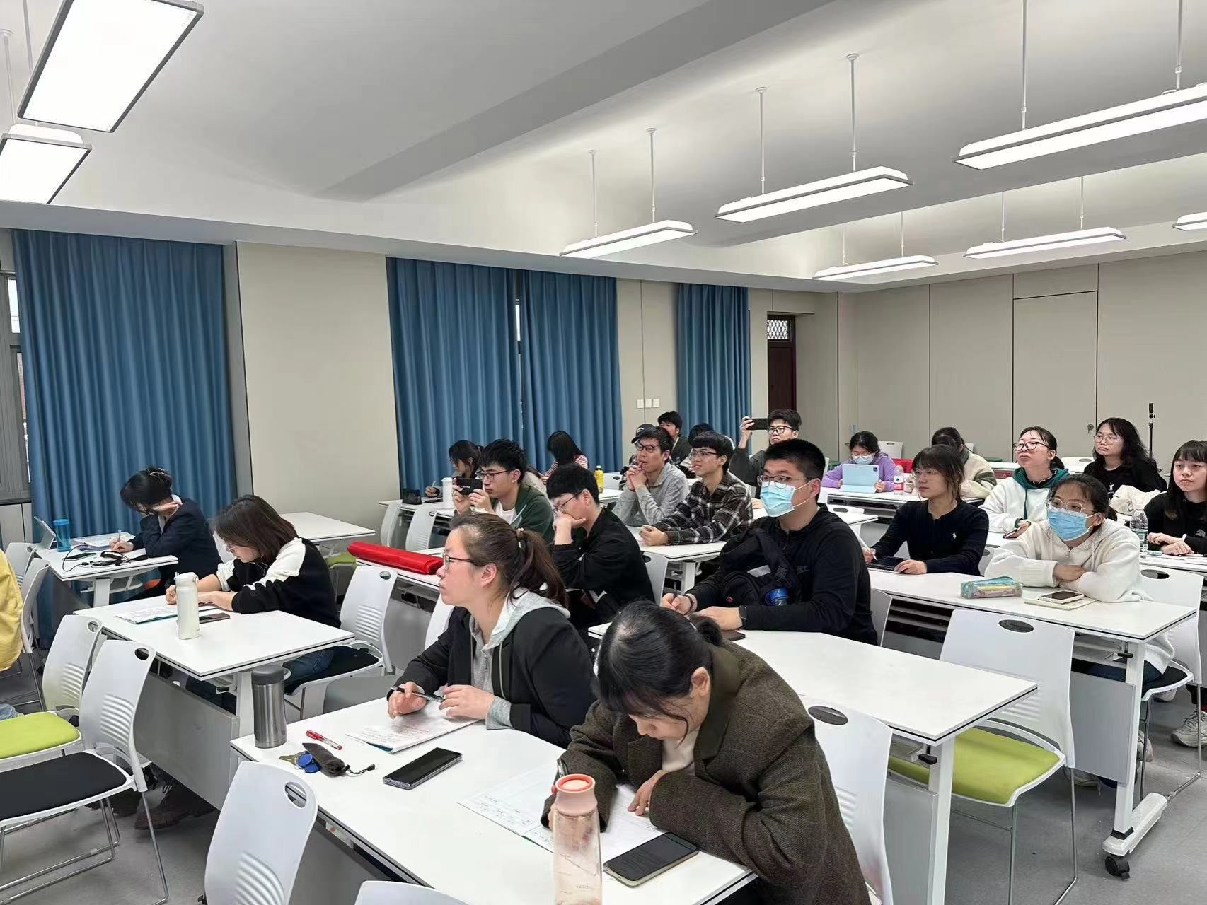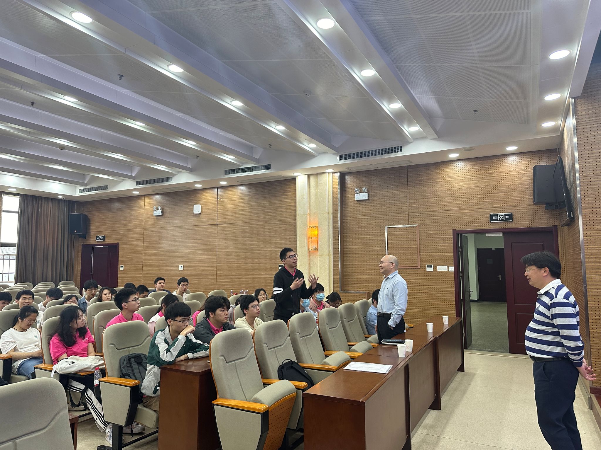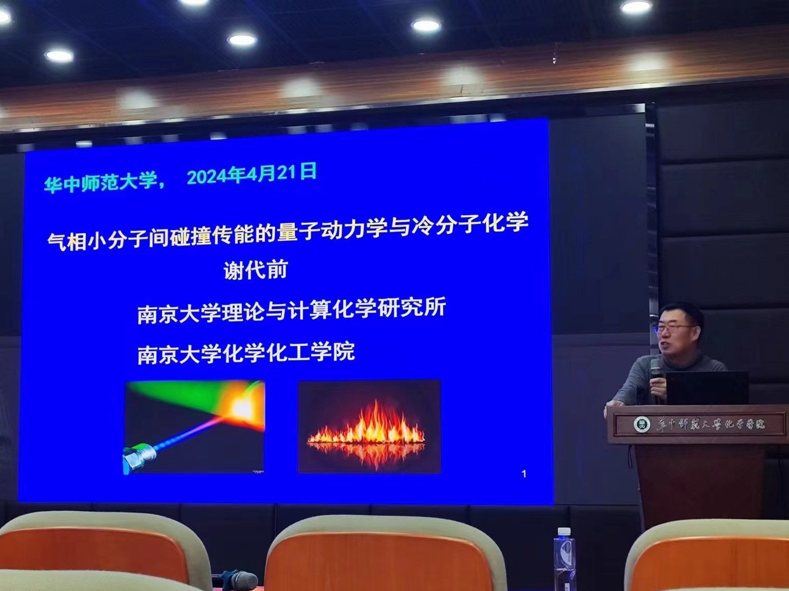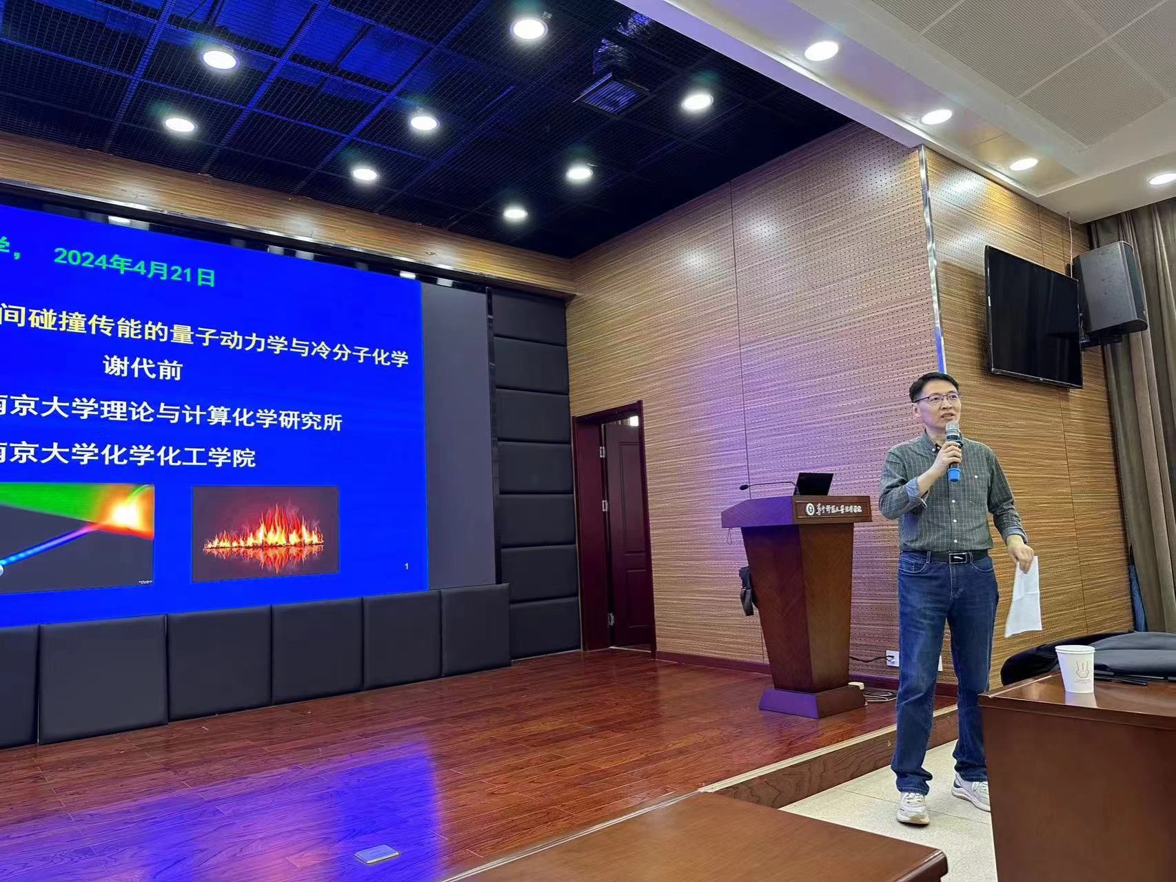 万坚教授和原弘教授的主持下,南京大学谢代前教授在华中师范大学逸夫化学楼为同学们进行了以“气相小分子间碰撞传能的量子动力学与冷分子化学”为题的精彩报告,介绍了分子间传能动力学超冷分子反应的量子动力学背景和实际应用,让同学们对相关研究领域有了进一步了解。随后,饶立副教授和陈建副教授分别针对“《结构化学》课程教学研究与实践” “《有机化学》数字化辅助下的个性化自主学习模式”两项课题开展了专题讲座,为同学们梳理了课程内容,拓展数字化教学新思路,给同学们带来了很大的启发。在最后的交流阶段,同学们积极提出自己的见解和疑惑,也在教授们的解答中更加明晰了解决部分教学难题的可行方案。