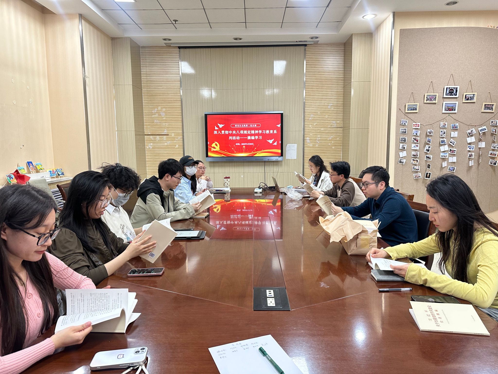 部分支部进行集中理论学习。研究生无机第二党支部刘静怡结合实际案例详细解读了中央八项规定精神的内涵与要求。党员同志们进一步深化了对中央八项规定精神的认识,表示在学术研究中要脚踏实地,积极践行中央八项规定精神。