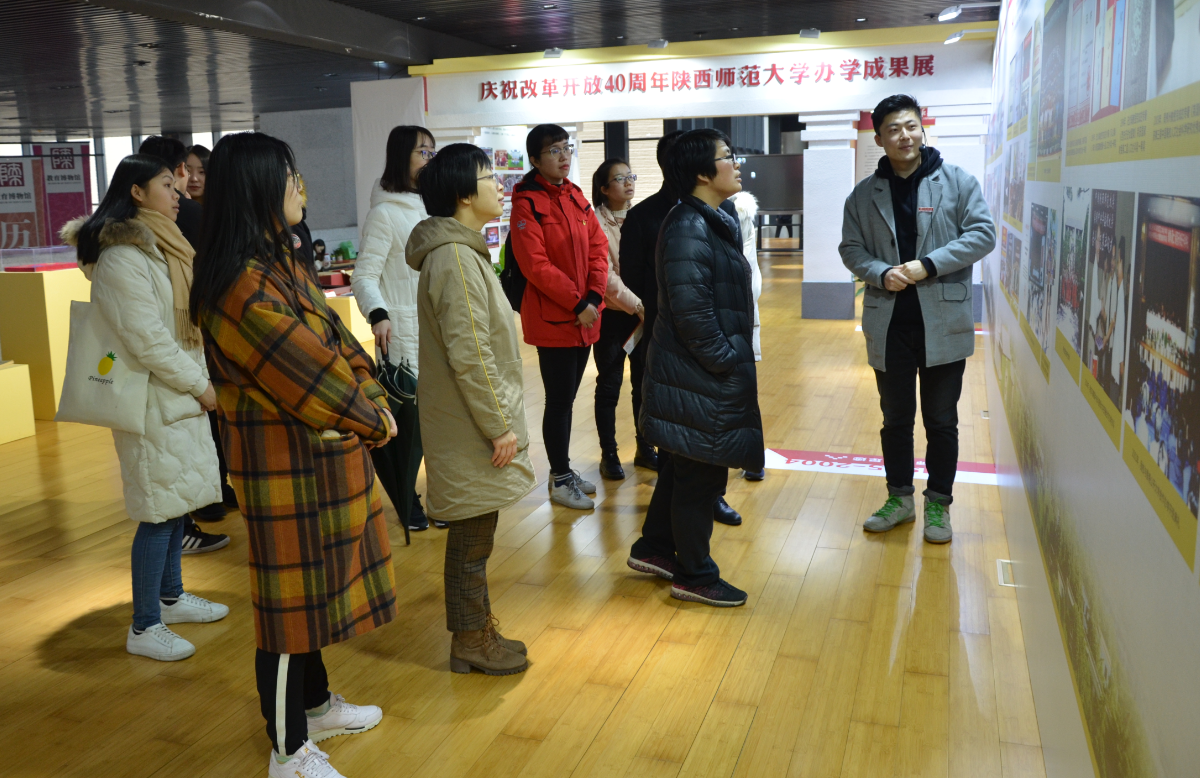 教工行政党支部全体成员与2015级本科生党员共同参观了“与时代同行——庆祝改革开放40年陕西师范大学办学成果展”。本次成果展由我校党委宣传部、档案馆主办,教育博物馆协办,全面回顾和展示了我校在改革开放四十年来的发展变迁与辉煌成就。