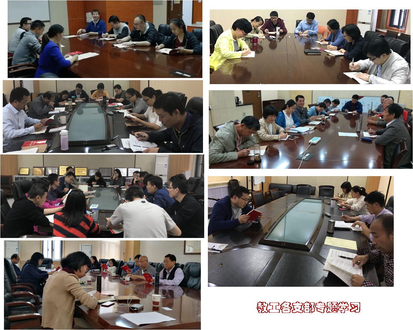 2018年九月19-21日,各教工党支部积极开展了《中国共产党纪律处分条例》(新)的专题学习,学习新修订纪律处分条例的亮点和针对性,并展开了热烈的讨论。党员老师积极发言,从自身出发,遵守党的纪律,守住底线。老师们互动良好,纪律意识得到进一步加强。几位老党员认真参会,做好学习记录,成为所有党员老师学习的典范!学习结束后,各支部对今后如何开展支部学习活动、如何有效召开支部组织活动及与学生党支部共建活动的方案、学科方向科研交流活动的意向、提出了有建设性的建议和意见。