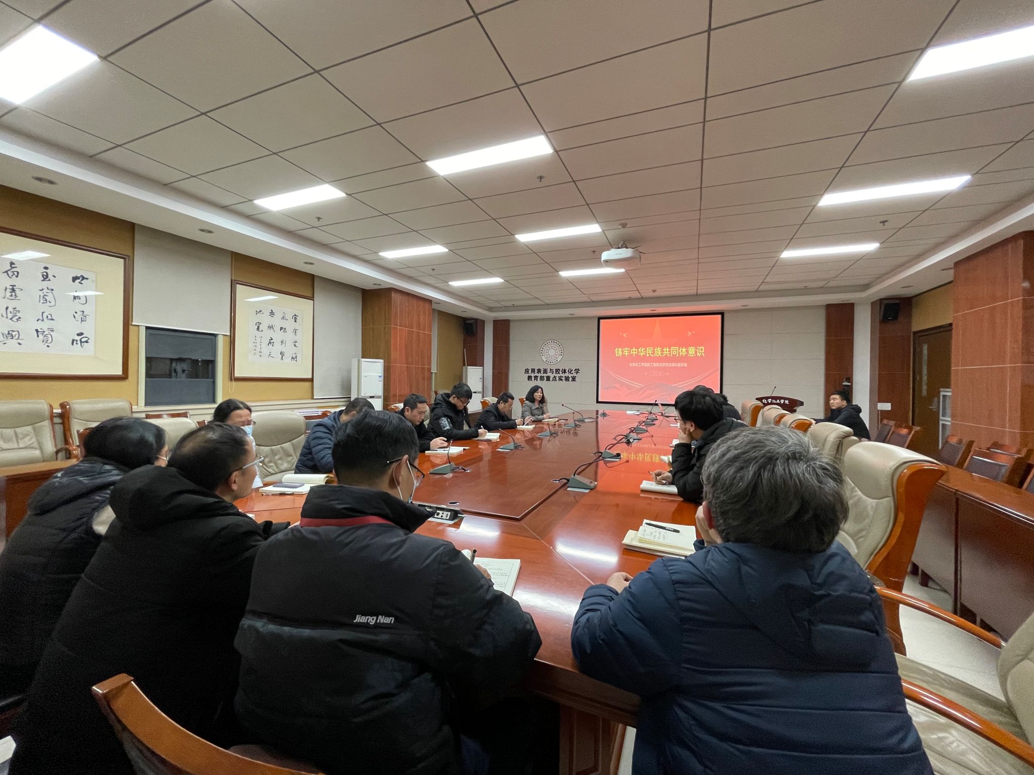 教工有机化学党支部召开“铸牢中华民族共同体意识”主题党日活动。黄治炎同志领学了习近平总书记的重要讲话精神。李楠主任还就本科教学课堂管理、实验教学实验室管理等问题主持了讨论会。