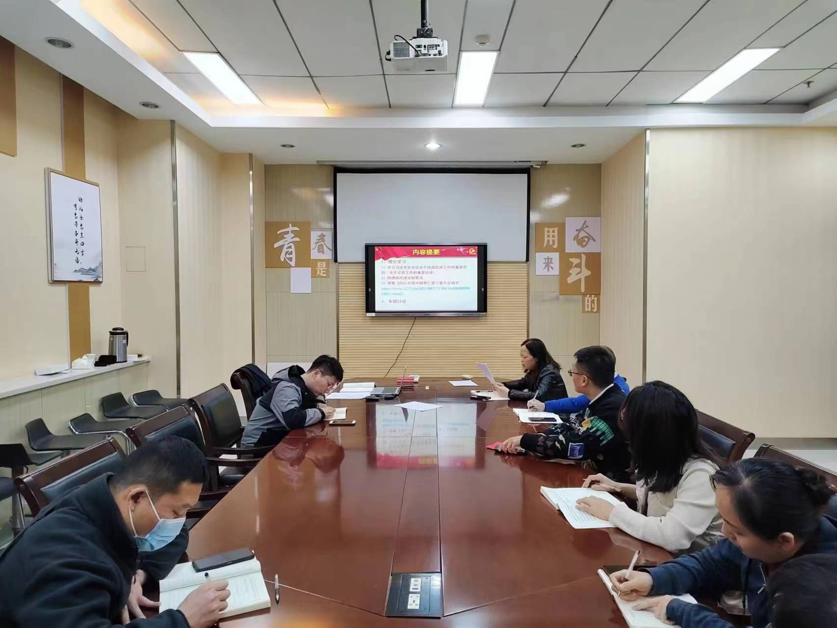关于成立教师工作组的事项。赵健同志带领大家深入学习贯彻习近平总书记的重要讲话。杨鹏同志分享了自己在成果转化方面的一些经验和感悟。房喻院士对杨鹏同志在基础研究和应用研究方面取得的成绩给予了充分肯定,并鼓励大家要特色化、差异化发展。