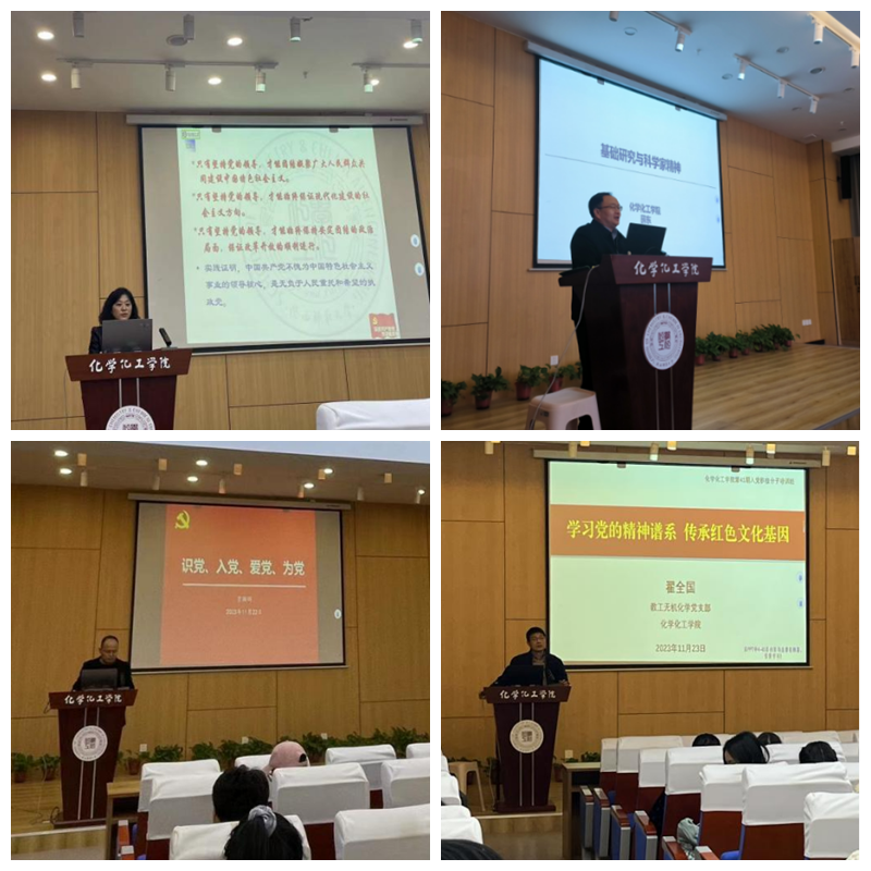 党委书记高香玲、院长薛东、副书记贾颍辉、副院长翟全国和教授陈建刚,依次以“党的宗旨、性质和任务”、“基础研究与科学家精神”、“识党、入党、爱党、为党”、“学习党的精神体系,传承红色文化基因”、“从信仰到责任”为题开展专题报告。青年学员通过学习中国共产党的性质、宗旨、指导思想、中国共产党的精神体系、中国共产党领导中国人民百年奋斗的辉煌成就,中国共产党党员先进典型示范引领事例等,促进全体入党积极分子牢固树立党员的使命感,切身感悟党员感召,在思想行动上积极向党组织靠拢。本次培训辅以视频教学,内容丰富,反响热烈。专题片《榜样7》以“不忘初心、牢记使命”为主题,邀请王亚平、王传喜等八位党的二十大代表参加录制,通过典型事迹展示,生动展现中国共产党人坚定信念、践行宗旨、拼搏奉献、廉洁奉公的高尚品质和精神风范。