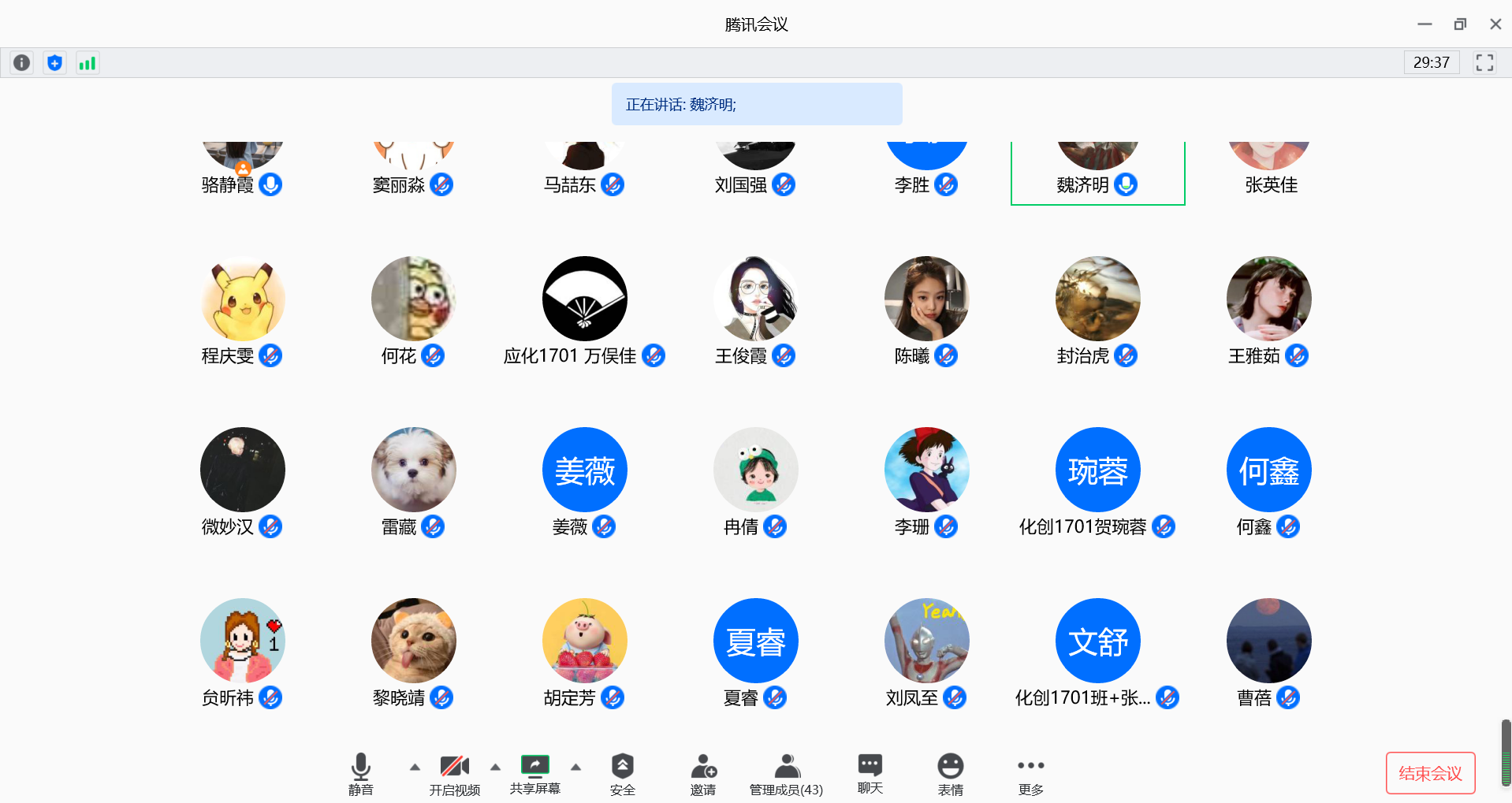 第二部分,党支部依托腾讯会议平台,组织支部党员对身边发生的抗疫小故事进行分享。李汶颖同志分享了家人作为湖南本地第一批抗疫护士,奋战一线的英勇事迹;刘国强同志分享了假期期间,学校为保障师生安全,积极做好防控工作的事迹;魏济明同志分享了2020届毕业生谭秋慧为基层防疫助力,主动前往社区服务站成为志愿者的事迹。会议之后,一部分同志将自己的故事和感想制作成文档进行了分享。