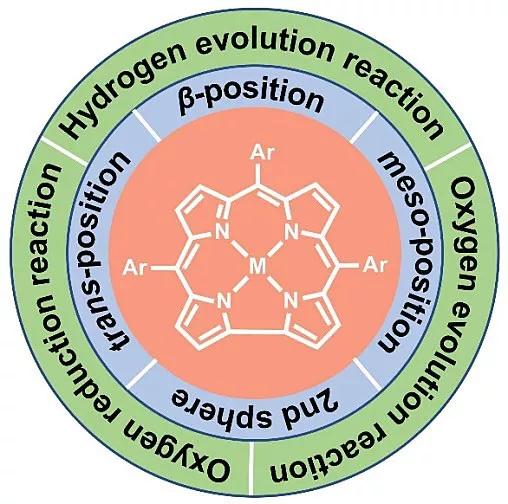 近年来,多种金属咔咯化合物已被证明能够有效地催化HER、OER和ORR。咔咯是一种自身具有氧化还原活性的三价阴离子配体,具有刚性的四配位平面分子结构,在稳定高价金属中心方面非常有效。一方面,在OER和ORR催化中,高价金属中心通常被认为是O‒O键形成和断裂过程中的关键中间体;另一方面,由于咔咯大环对高价金属中心的稳定作用使得低价金属离子通常具有很强的还原性,这有利于对HER和ORR的催化。金属咔咯化合物还具有非常特征的电子吸收光谱,这为通过光谱手段来研究催化反应过程提供了便利。此外,研究表明使用不同的金属或者在咔咯大环的meso-或β-位引入不同的取代基团可以显著地改变金属咔咯化合物的催化性能。