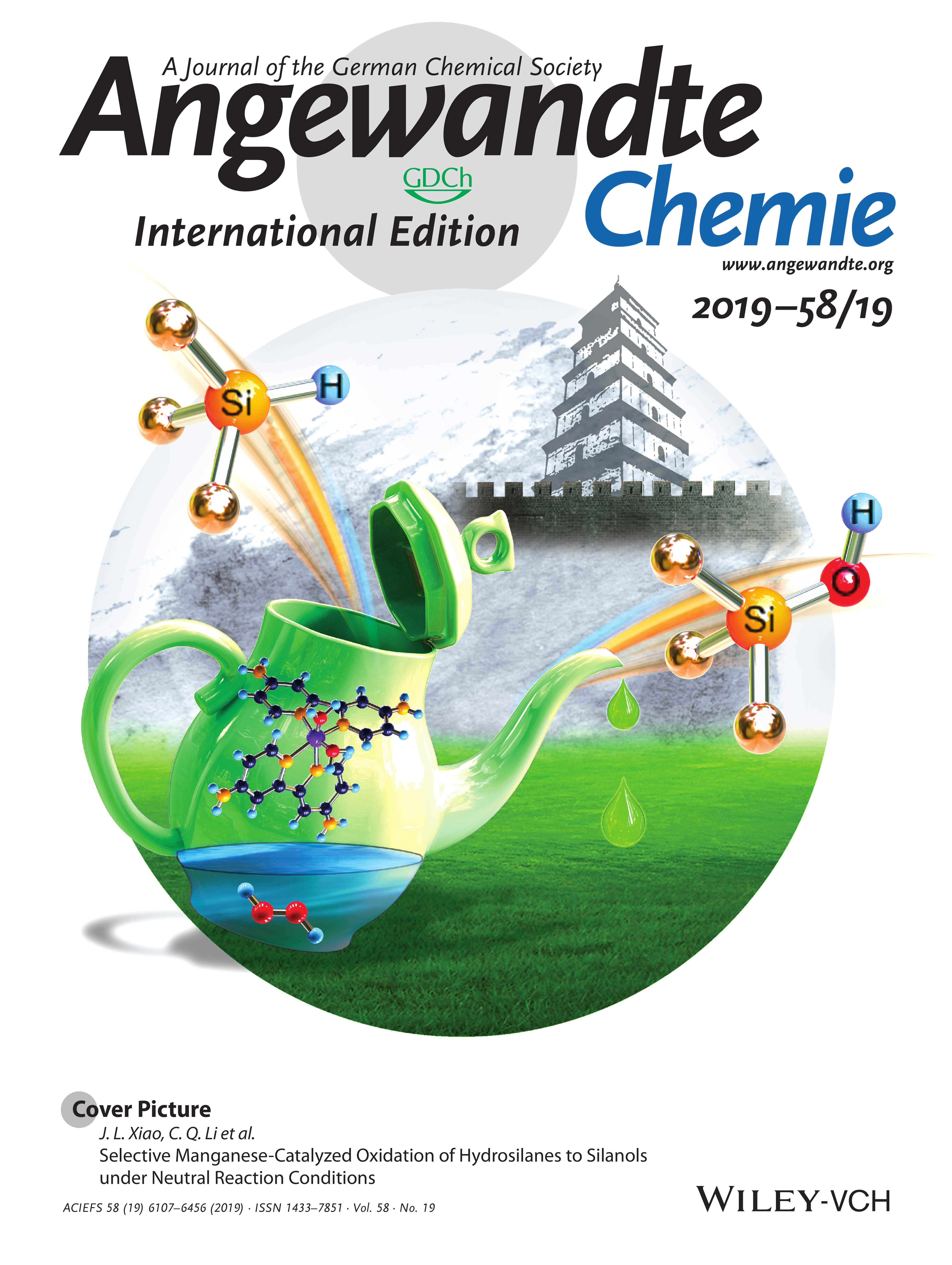 肖建良教授团队“绿色催化合成团队”, 李超群研究员小组通过发展富电子联吡啶型锰作为催化剂,以H2O2为氧化剂实现了对硅氢键的高效、选择性条件温和的氧化,解决了硅氢键氧化合成硅醇不过避免有硅醚副产物这一挑战性课题。这一研究成果以VIP文章在线发表在国际顶尖化学期刊《德国应用化学》(Angew. Chem., Int. Ed. 2019, 58, 6380 –6384)上,并被选前封面文章。最近文章也被“ChemViews”报道。硕士研究生王凯凯为该论文第一作者,肖建良教授和李超群研究员为论文共同通讯作者,陕西师范大学为第一署名单位。